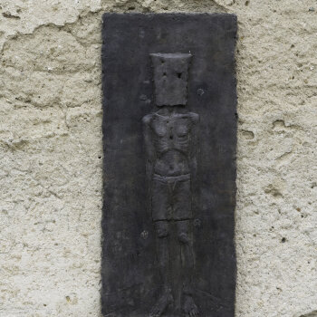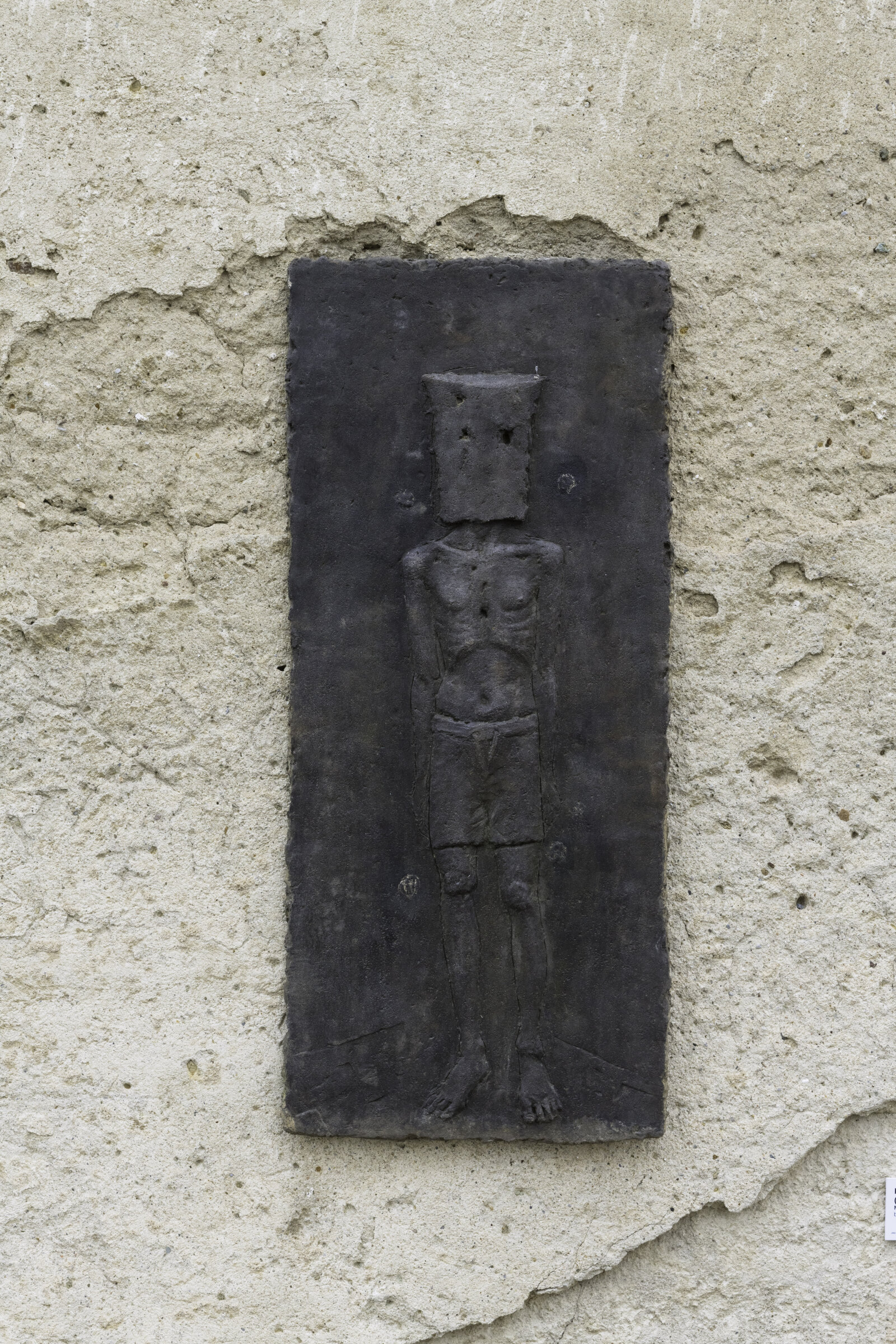 Kristina Vesková works in the inspiring landscape of Moravian Wallachia. In addition to sculptures and paintings, she creates land-art installations in the open air. In her work she aptly combines the experience gained in the studios of two different sculptors - Jaroslav Róna and Jan Hendrych. Influenced by Róna's penchant for imagination and weirdness, Vesková blends her interest in classically modeled form with the generous concept of sculpture as we know it from Hendrych's work. This is evidenced by the Little Adolf relief (2015), where a sensitively modelled boy figure is crowned with a radically anonymized head resembling a mask. Vesková applies here Róna’s world of mythical phantoms to a real historical figure, the infamous Adolf Hitler. The intention, however, was not to portray the person as such but to refer to the idea that all evil stems from innocence, as this criminal was also a child once.