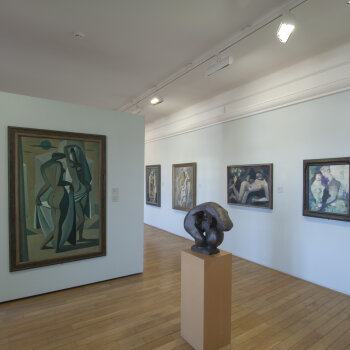 K jednomu z nejvzácnějších muzejních fondů patří dílo Antonína Procházky, žijícího v Brně od roku 1924. Z prezentovaných prací lze získat poměrně ucelený pohled na vývoj tvorby tohoto významného umělce: od raných expresívně pojatých obrazů generace Osmy, přes stěžejní díla Procházkova kubistického období a civilistní náměty čerpající ze společenské atmosféry 20. a 30. let až po antikizující tvorbu závěrečné fáze umělcova života. V souznění s tvorbou svého manžela malovala zvláště ve 30. letech Linka Procházková. Expozice klade důraz na díla umělců působících ve 20. a 30. letech ve Skupině výtvarných umělců v Brně, v jejíž činnosti se spojily nejpokrokovější osobnosti brněnské kultury – malíři, sochaři, architekti, ale také významní historici umění a sběratelé. Neodmyslitelně je s Brnem spjata tvorba Jaroslava Krále, který svým klasicizujícím zaměřením, přes nepopiratelnou aktuálnost a návaznost na moderní směry soudobého umění, nejlépe vypovídá o společenském a kulturním klimatu meziválečného Brna. Vedle zakládajících členů Skupiny výtvarných umělců v Brně Josefa Šímy, Františka Süssera, Josefa Zamazala, Ferdiše Duši, Eduarda Miléna a dalších, je zde prezentováno také rané a posléze abstraktní dílo Františka Foltýna, který si po návratu z Paříže zvolil Brno za svůj druhý domov. K výrazným uměleckým osobnostem mladší generace patřil malíř František Kaláb, hledající ve svých obrazech osobité poetické vyjádření. Ze sochařské tvorby je zejména představeno dílo Josefa Kubíčka, které se odvíjí od expresívně laděných sociálních námětů 20. let ke klasicistním ženským dřevěným skulpturám pozdějšího období. Koncem 30. let začíná působit na Moravě Vincenc Makovský, jehož plastiky jsou zastoupeny od avantgardních poloh po díla směřující k realismu. Své nezastupitelné místo v brněnské meziválečné kultuře měla i designerská činnost architekta Bohuslava Fuchse, který pro společnost Aka, kterou vedla jeho manželka Drahomíra Fuchsová a jejíž hlavní náplni byla výroba ručně tkaných textilií, navrhoval po roce 1932 skleněné a keramické soubory, vázy a mísy, jako i drobné předměty z alpaky, vyznačující se čistými geometrickými tvary.